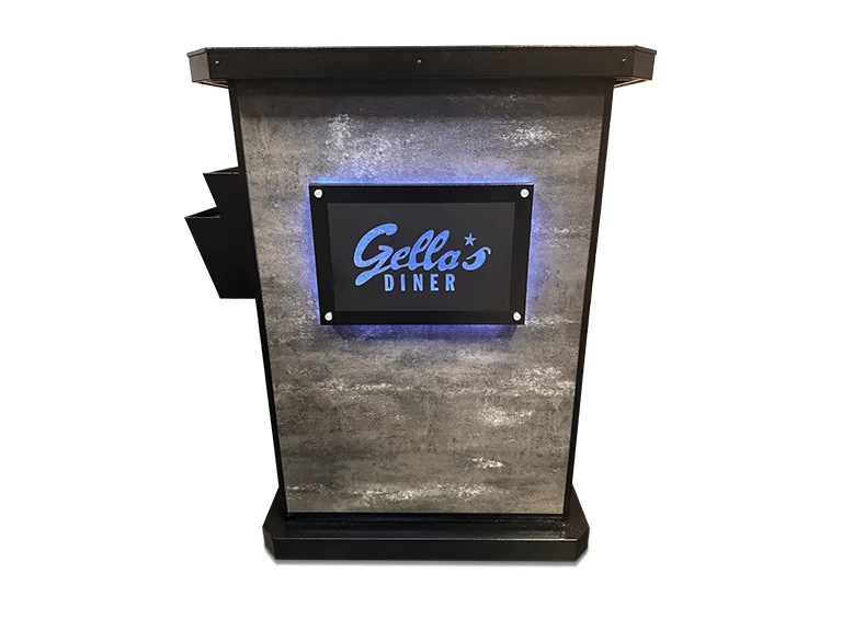 Tawney Marquetry laminate exudes a warm mid-tone brown wood, featuring a large-scale pieced marquetry pattern. Delve into our diverse range of customization options, showcasing an impressive selection of over 800 laminate choices. Enhance your custom hostess stand by infusing branding or artwork onto the panels, turning it into a dynamic promotional centerpiece. Our LED signs […]