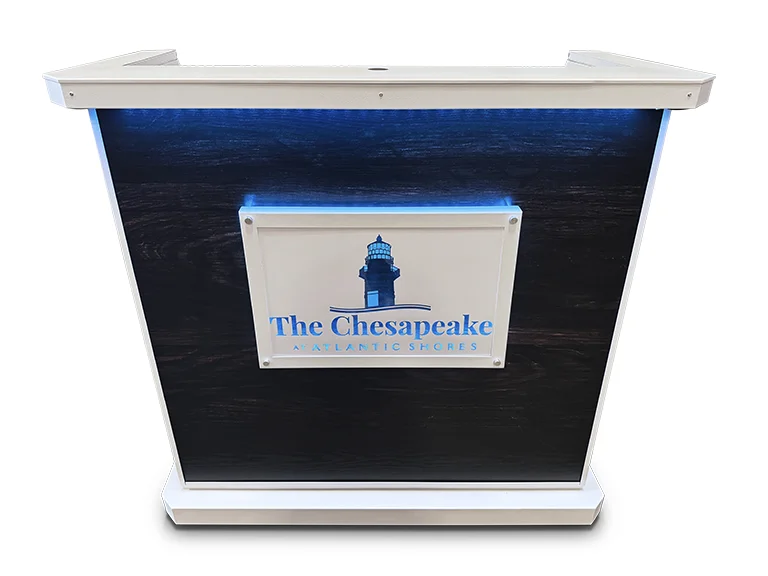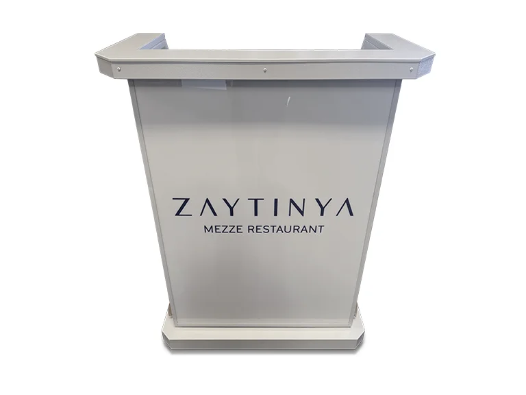 Our white-framed Team Hostess Stand boasts Brazilian Grey laminate panels, featuring a Brazilian Arabescato stone design with multiple shades ranging from white to mid-tone grey. Customize your hostess podium with confidence by choosing from our extensive selection, including over 800 laminate options. Transform your custom stand into a powerful promotional tool by adding branding or […]