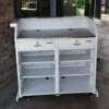 The Team Hostess Stand is available in three frame styles: black, white, and distressed steel (rustic). For a trendy metal accent look, choose gold or bronze trim for your black, white or rustic frame. Outdoor use may degrade the distressed steel (rustic) frame.